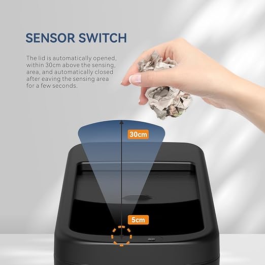 - 【High-Tech Induction Device】Our touch free trash can used high technology induction device, whether it is sensing the proximity of a human hand or an object, it can respond quickly to open the lid of the trash can, and automatically close the lid within 5 seconds after the trash is thrown in.