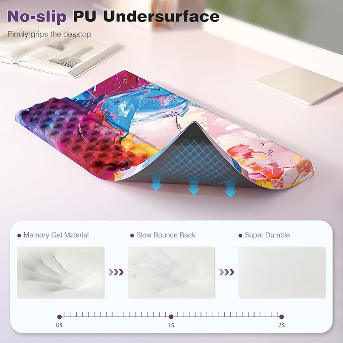 - Sticky PU base grips your desk like glue so your keyboard pad stays put during intense work sessions or gaming marathons. The silky-smooth top layer feels crazy comfy against your skin - like your hand's chilling on a cloud while you use it. Perfect for sweaty-palmed coders, precision-obsessed gamers and other people who use computers for long periods of time.