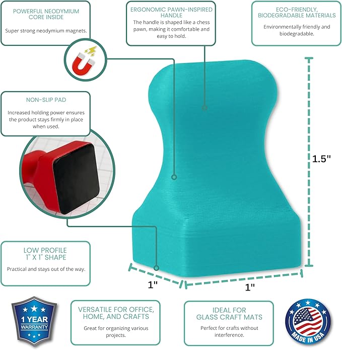 Glassboard Studio MiniBar Magnet - Strong Neodymium Rare Earth Magnets for Fridge, Whiteboard, Locker & Magnetic Glassboards - Crafting & Office Use - Strong Fridge Magnets (Seaside Teal Pawn, 2)