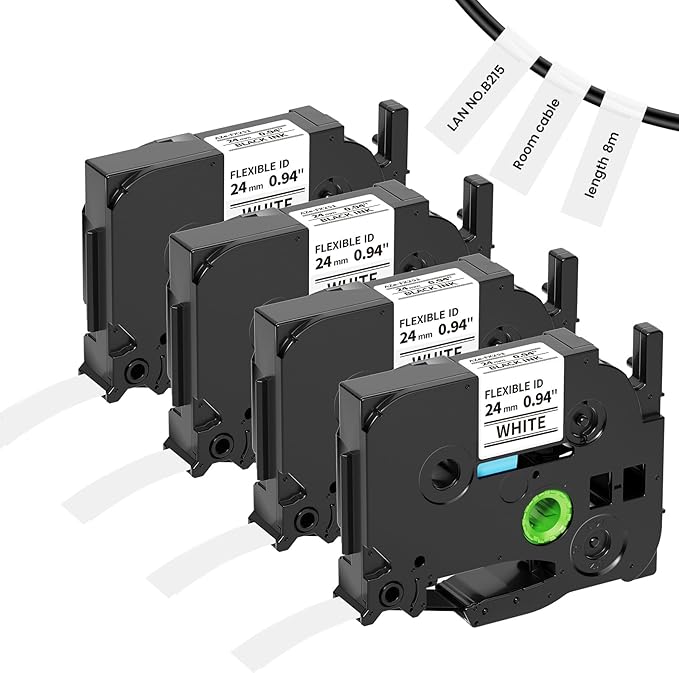 Flexible-ID TZe-FX251 Label Tape 24mm Compatible with Brother P-touch Flexible Label TZeFX251 FX251 1 inch, Suited for Wire Wrapping and Frlagging for PTE560TVP PTD600 PTP710BT Label Maker, 4pk