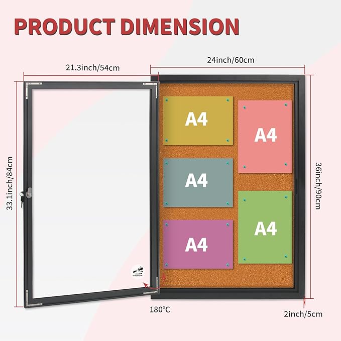 - π Secure Enclosed Bulletin Board with Locking Door: Swing-open glass doors + 2 keys prevent tampering in high-traffic areas like offices or public walkways.