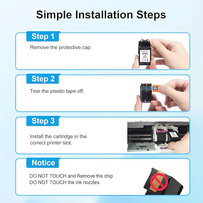 - With Latest Upgraded Chips: This 63xl black for hp 63 black ink cartridge is equiped with the latest upgraded high accuracy chip, ensures perfect compatibility with your printer