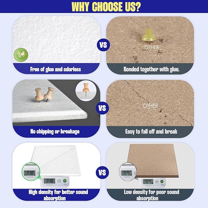 - Sound Absorption: The dense felt cork board helps absorb sound, making it an excellent choice for reducing noise and enhancing acoustics in your office, studio, or home office space