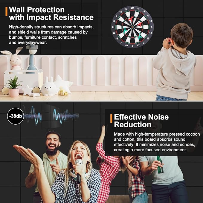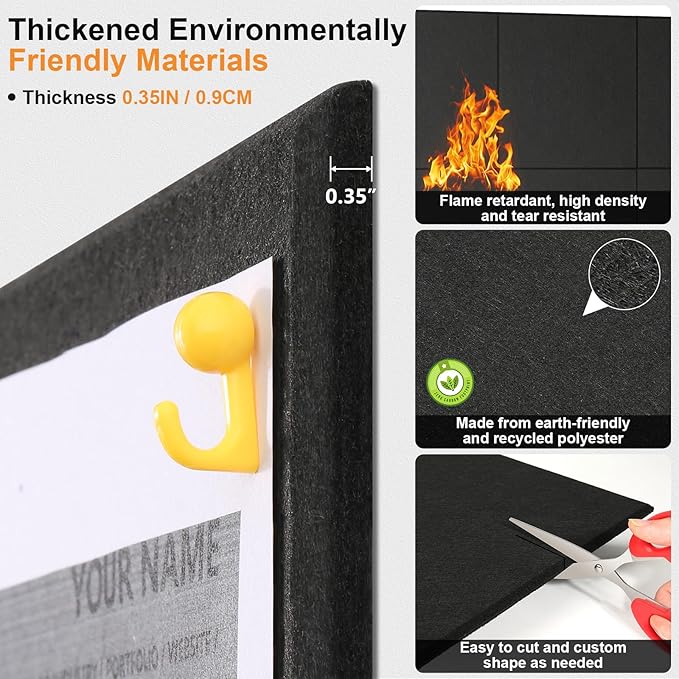 - Premium Materials & Enhanced Wall Protection: Crafted from high-density and durable felt board material, our product ensures a smooth, robust surface that holds pins securely. Its high-density structure not only delivers exceptional durability and reliability as an office board, pin board, or sleek black bulletin board but also absorbs impacts to shield your walls from bumps, furniture contact, scratches, and everyday wear.