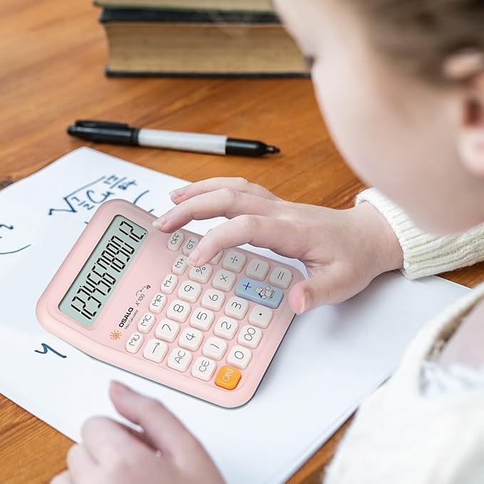 Pendancy Pink Calculator for Kids, Cute Small Calculators Desktop 12 Digit, Basic Function Large LCD Display Big Buttons, for Office, School, Home Use OS-A100 (Pink)