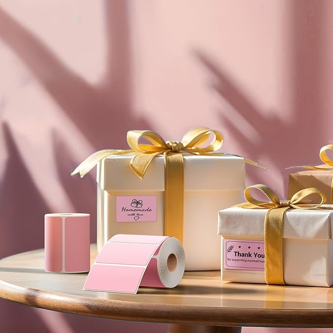 2.25x1.25 Inch Thermal Labels Pink, Holographic Sliver Barcode Thermal Labels for Thermal Printer and Small Business, Multi-Purpose Rectangle Stickers, 500 Sheets/Roll