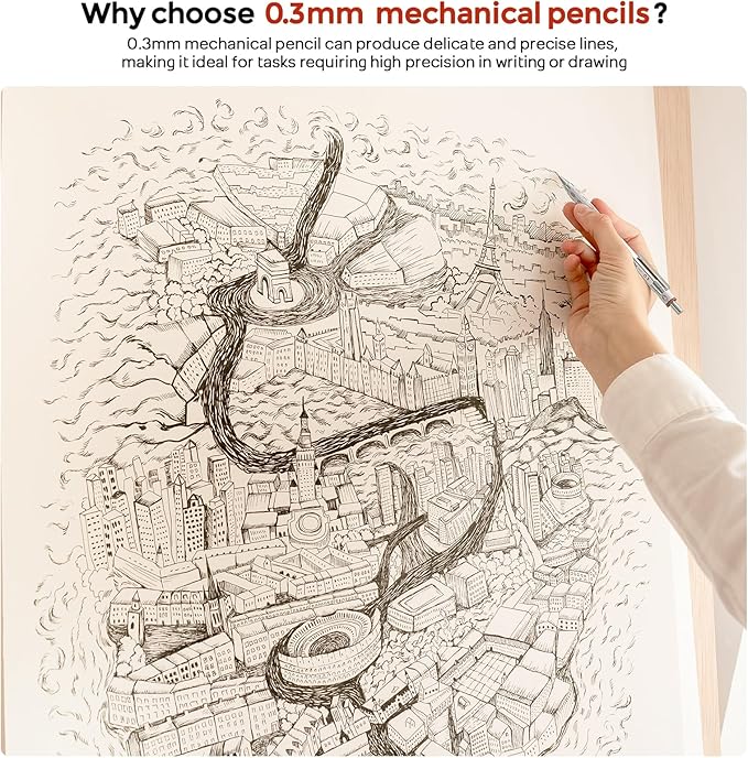- 0.3mm HB & 2B Lead: Extra durable lead is stronger than standard lead, produce clear and dark line & marks,works with mechanical pencil with no need to sharpen.Easily correct mistakes with a replaceable eraser or 4B eraser. Perfect supplies for writing,drafting, drawing & template work