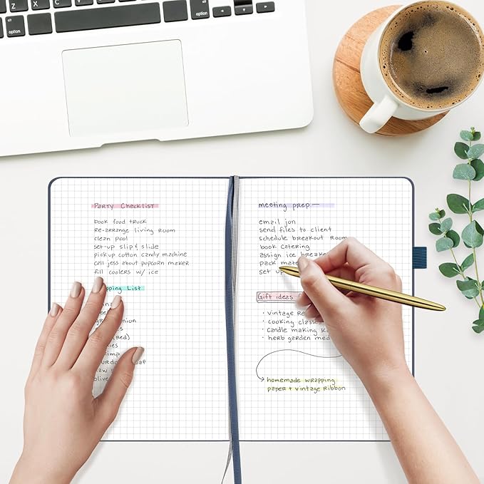 - 180Β° LAY-FLAT DESIGN: The lay-flat design allows for easy writing and ensures that you can utilize every page efficiently. Journaling, note-taking and planning has never been easier. 2 Bookmarks help you find important content faster