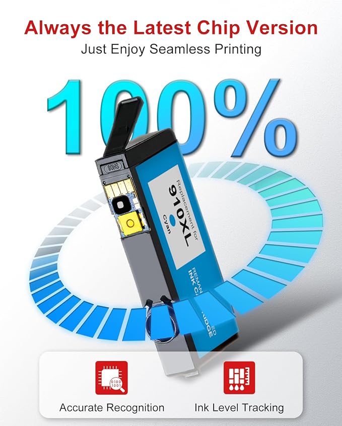 - Performance print: Enhance your printing experience and boost performance with EaseFusion 910XL Ink Cartridges. Featuring advanced chip technology, these cartridges are specifically designed for "H P+" printers, ensuring seamless compatibility and superior results