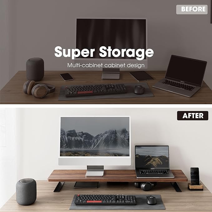 - 【Super Easy to Assemble】Our computer monitor riser comes with pre-drilled holes, all you need to do is screw the 4 brackets into the panel. You can install your dual monitor riser within 2 minutes!