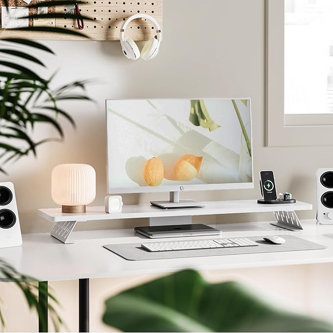 - 【Avoid Shoulder Pain】Desk shelf is raised 3.9" to a comfortable line of sight, effectively reducing the pressure on the neck and spine. The improvement of posture will make you more focused and prevent cervical spondylosis.