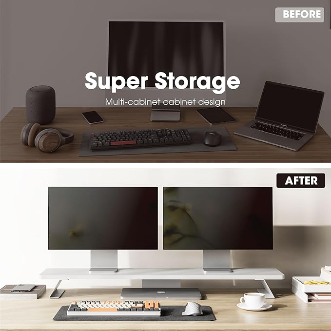 - 【Super Easy to Assemble】Our computer monitor riser comes with pre-drilled holes, all you need to do is screw the 4 brackets into the panel. You can install your dual monitor riser within 2 minutes!