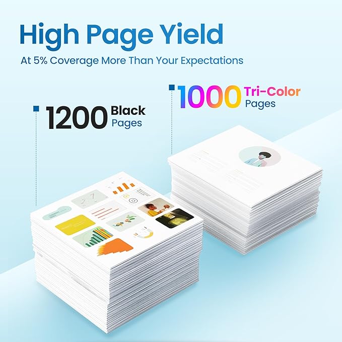 - Higher Page Yield: Up to 1,200 Pages Per 910XL Ink Cartridge Black and 1,000 Pages for 910XL Color Ink Cartridge (At 5% coverage of A4 paper).