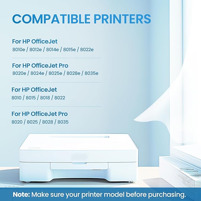 - Printer Compability: Compatible with (1) HP OfficeJet 8010, 8010e, 8012e, 8014e, 8015, 8015e, 8018, 8022, 8022e; (2) HP OfficeJet Pro 8020, 8021οΌ8020e, 8024,8024e, 8025, 8025e, 8028, 8028e,8030,8030e, 8035, 8035e Printer.