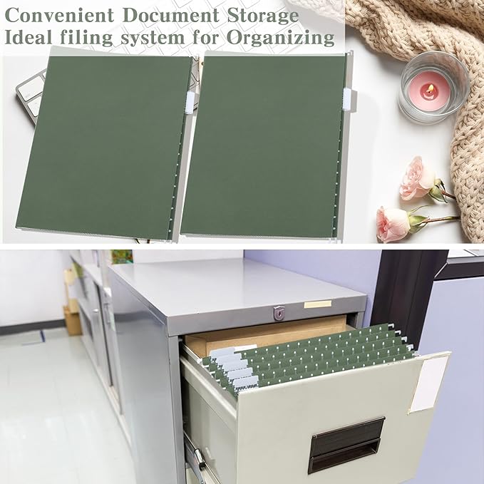 - Package includes: This set features 15 olive green hanging file folders, 15 plastic tabs, and 5 sheets of large blank labels. Each hanging file folder measures 11 x 18 inches, designed to accommodate files up to 11 x 17 inches comfortably. Ideal for organizing your documents, these hanging file folders are designed to enhance your filing system and provide a cohesive look to your workspace with a touch of army green elegance.