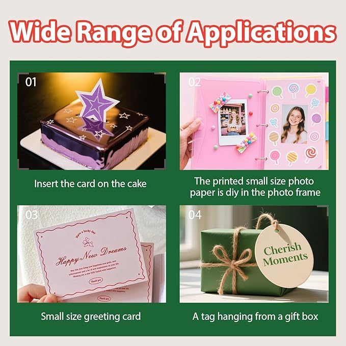 - Dye Ink Compatible & Printer Universal Engineered for inkjet printers , ensuring seamless compatibility. Smooth coating reduces smudges and delivers fade-resistant results for long-term preservation.