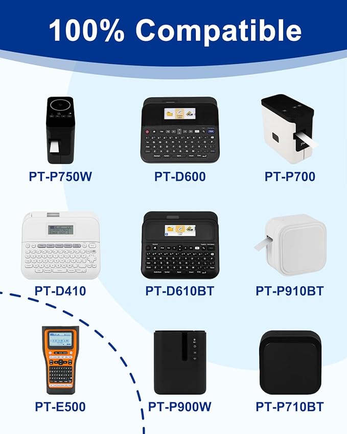 - Compatible with brother ptouch label maker: PT-D600, PT-D610BT, PT-D600VP, PT-P700, PT-P710BT, PT-P750WVP, PT-P900W, PT-P910BT, PT-2730VP, PT-H500LI, PT-2730, PT-2430PC, PT-2300, PT-E500, PT-1400, PT-1500, PT-1500PC, PT-1600, PT-2110, PT-2200, PT-2210, PT-2300, PT-2310, PT-2400 ect