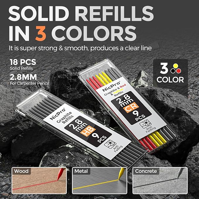 - Marks on Various Surfaces: This work pencil is matched with a 2.8 mm thick color lead, It can mark on almost all surfaces whether dry, damp, smooth, rough or dusty. Making it a standout choice for woodworkers, electricians, and other tradespeople