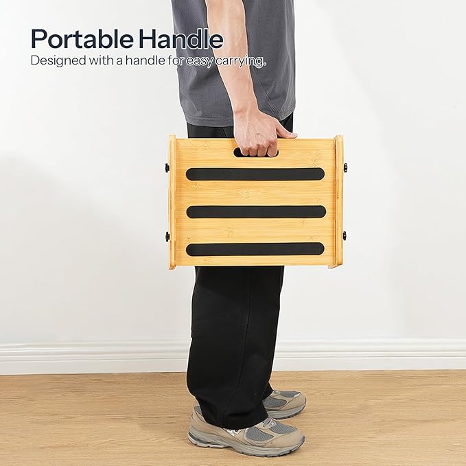- Thoughtful Details: Equipped with non-slip rubber strips on the top and EVA pads on the bottom, this footrest ensures stability while protecting your floor from scratches. The convenient handle design allows for easy mobility, meeting your needs whenever required