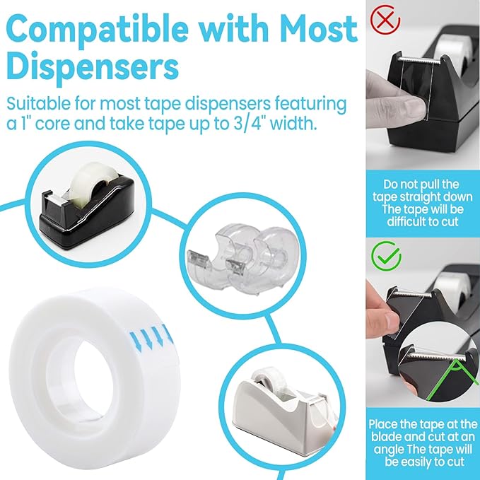 - π Universal Dispenser Fit & Eco-Conscious Design: Compatible with most tape dispensers featuring a 1" core and accommodating tape up to ΒΎ" width. A sustainable choice for eco-friendly crafters, teachers, and families
