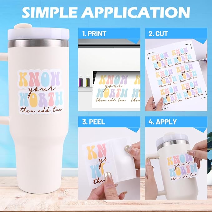 - Perfect for DIY Stickers – Easily create vibrant, personalized vinyl stickers by printing your designs on inkjet printable sticker vinyl. Simply design on your computer and print on printable vinyl sticker paper for high-quality results easily.