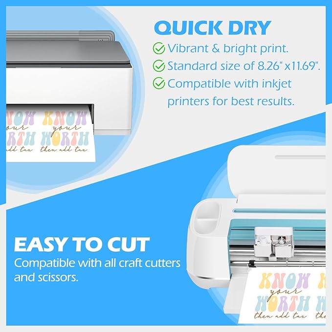 - Printer & Cutter Compatible – This 56 Sheets/Pack A4 standard-sized (8.26" x 11.69") sticker paper for inkjet printer works seamlessly with inkjet printers and is compatible with all craft cutters. It’s also easy to cut with scissors for added convenience, making it the perfect sticker paper for printer.