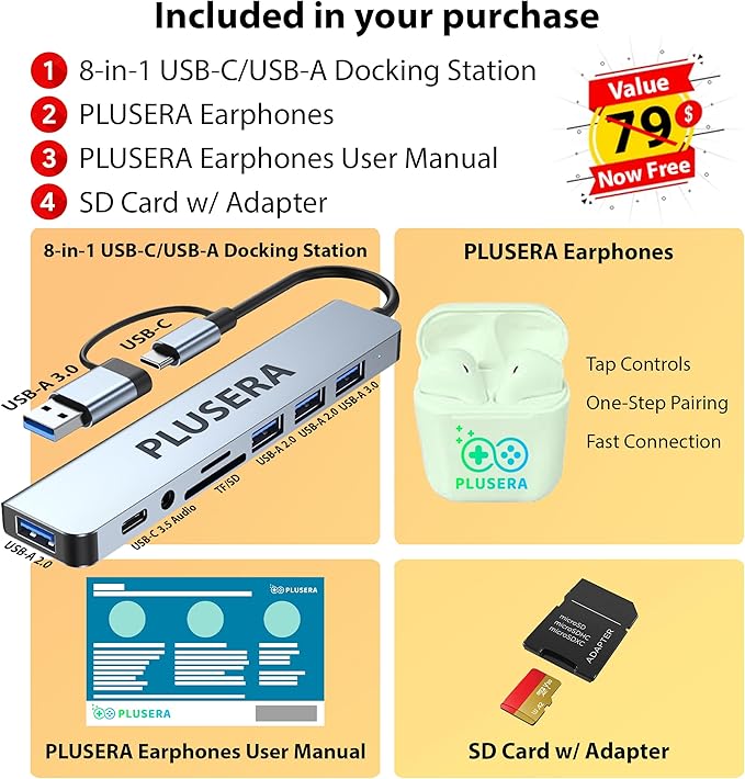 - 【Tech Specs】1 x USB-C 3.2. 4 x USB-A 2.0, 1 x USB-A 3.2. 1 x Ethernet Port. 1 x HDMI. 1 x VGA. 1 x Headphone/Microphone Combo Jack. 1 x SD Card Reader. Wi-Fi 6. Bluetooth. Windows 11 Pro, Microsoft Office Lifetime License, HD Audio with Surround Sound.