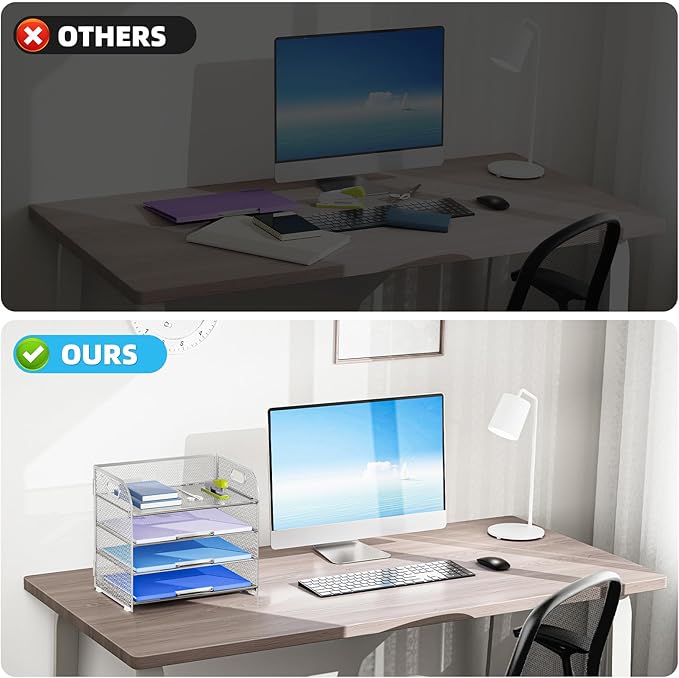 - 【Multi-Purpose Organizer】 4-tier layered design and large capacity make the paper organizer become an ideal choice for managing all kinds of letter-size letters, paper, books, bills, etc. Let you quickly identify the contents of each compartment super easy