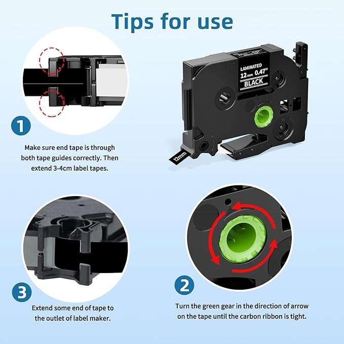 - Easy-Peel Design: These compatible with 12mm p touch brother label tape feature a split-back center for effortless label removal.