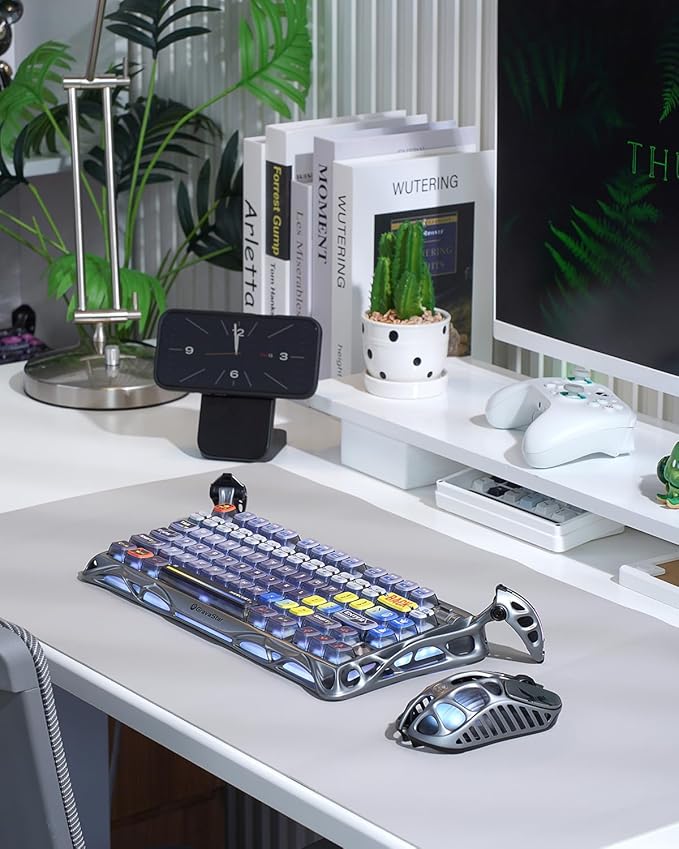 - ⚒️ Futuristic Design & Premium Build - The Mercury K1 Pro features a unique, finish with a sturdy aluminum alloy frame, combining durability and portability. Its skeletal frame design not only looks stunning but also stabilizes every keystroke, making it a perfect blend of art and functionality.