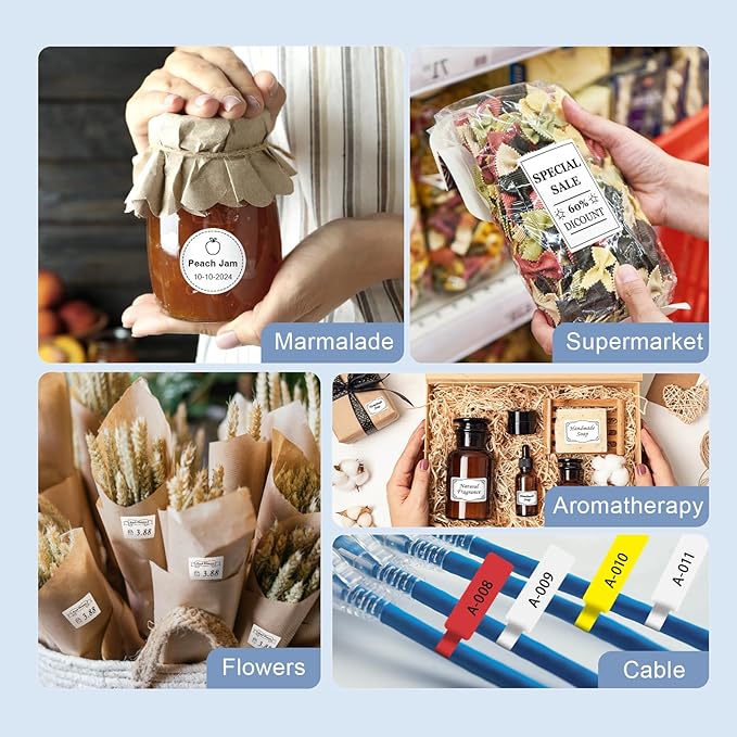 - Widely Application: The CLABEL label maker machine with tape has a wide range of applications and creativity. Like small businesses: clothing, crafts, retail, jewelry, etc. Label address, barcode, qr code, price, date, ingredients, and product labeling. Ideal for a variety of labeling needs, including Christmas,Halloween, Thanksgiving, Father's Day, Mother's Day