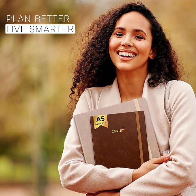 - ๐๐จ๐ก๐๐ง๐๐ข๐ก๐๐ ๐๐๐ง๐๐๐๐ฆ - 6.5" x 8.5" Weekly & Monthly Pages | Leather Cover | Round Corners | Elastic Closure Band | 100 GSM Thick Paper | Ink Resistant Paper | Planner Section | Weekly to do Section | Notes Section | Holidays | World Map | Bookmarking Ribbons | Pen Holder | Reference Calendars