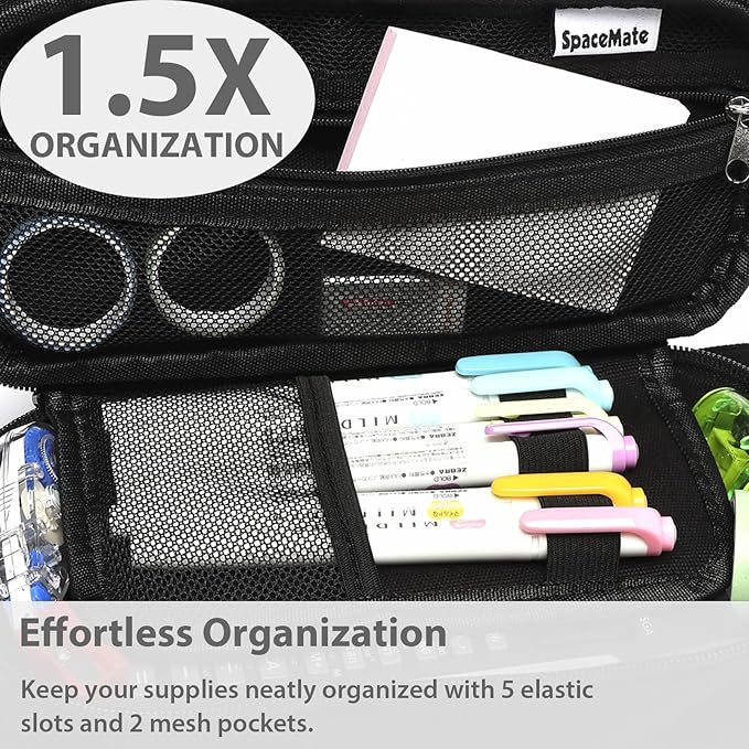 - 1.5X Large Capacity - SPACEMATE pouches have a capacity of 1800ml, is 1.5 times more than others (1000ml). It is easy to store 50-100 pencil, and also can store many kinds of school supplies, such as markers, brush pen, ruler, small notebooks, charger and TI-84 calculator.