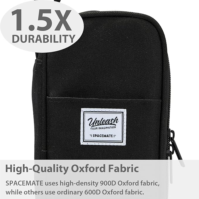 - SPACEMATE's pencil pouch is made of a high-density, hardy, and wear-resistant 900D oxford material, which is 50% thicker than other's products. This pouch is also popular among SPACEMATE employees' family members