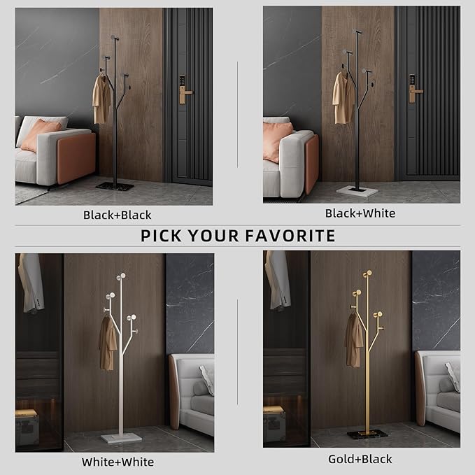 - Heavy-duty: Crafted from high-quality metal and paired with a 10.24” x 14.96” marble base, this tree-shaped corner coat rack offers exceptional stability and durability; Like a sturdy tree, it can support a heavy coat without tipping over