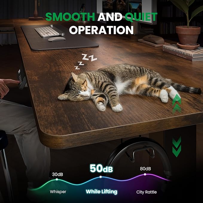 - 【Smooth and Quiet】Equipped with a high-performance motor, it supports one-touch smooth lifting with a noise level as low as 48 dB. Whether focusing on work or daily life at home, it maintains a quiet environment. The SIAGO L-shaped electric standing desk achieves harmonious integration of office and home life through professional mechanical design.