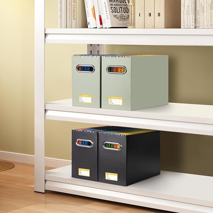 - Optimized Design: The hanging file organizer comes with extra label stickers (the 2-pack option includes 6 labels, while the 4-pack option includes 12 labels), making it easy for users to identify the contents of the files; This portable file box with handle improves your organization and retrieval efficiency
