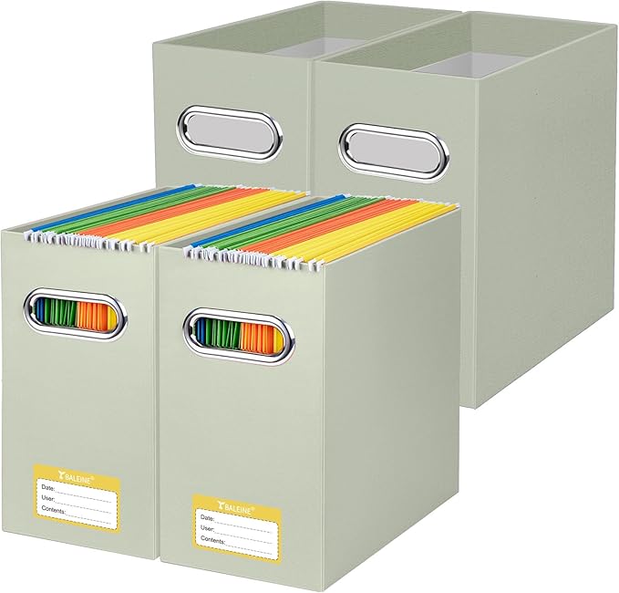 - UNIVERSAL SIZE: BALEINE File box with handles is suitable for letter size files; Designed for efficiency and functionality, itβs ideal for storing and organizing your paper documents, notebooks, and magazines (NOTE: Folders not included)
