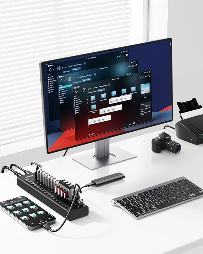 - 【16-Port USB 3.2 Hub with 10Gbps Speed】Expand your PC or laptop’s connectivity with 16 high-speed USB 3.2 Gen 2 ports (10Gbps) – backward compatible with USB 3.1/3.0/2.0 devices , transferring HD videos or large files 2x faster than USB 3.0 hubs, saving creators hours of waiting time when editing 4K projects or engineers handling massive datasets.