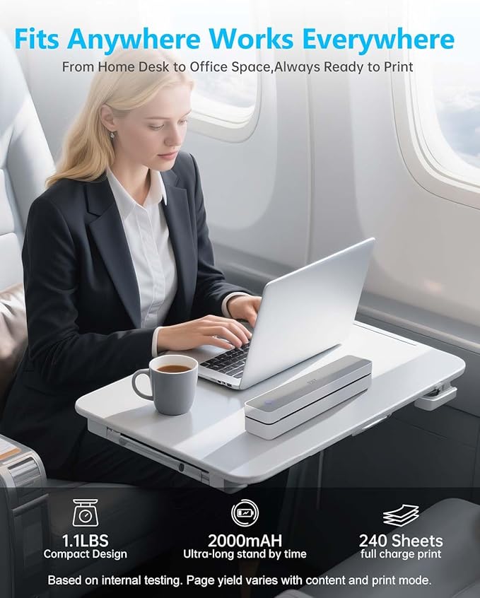 - ✅【Rechargeable & Multi-Device Compatible】Don’t let size fool you,our travel printer built-in 2000mAh rechargeable battery prints up to 240 sheets per charge. Take it on the go with no outlet required. Small printer great for on-the-road printing, business travel, camping, or emergency use—a truly wireless printer.
