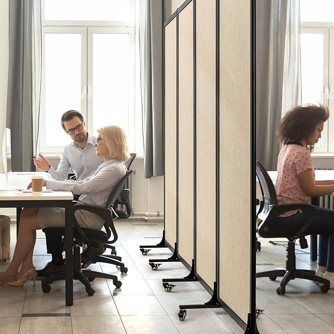 Upgrade Version Room Partition and Divider, Freestanding Rolling Dividers with Wheels,Office Privacy Screen Divider Wall,Classroom Felt Dividers,10'6"L* 6'7"H,5 Panel,Beige