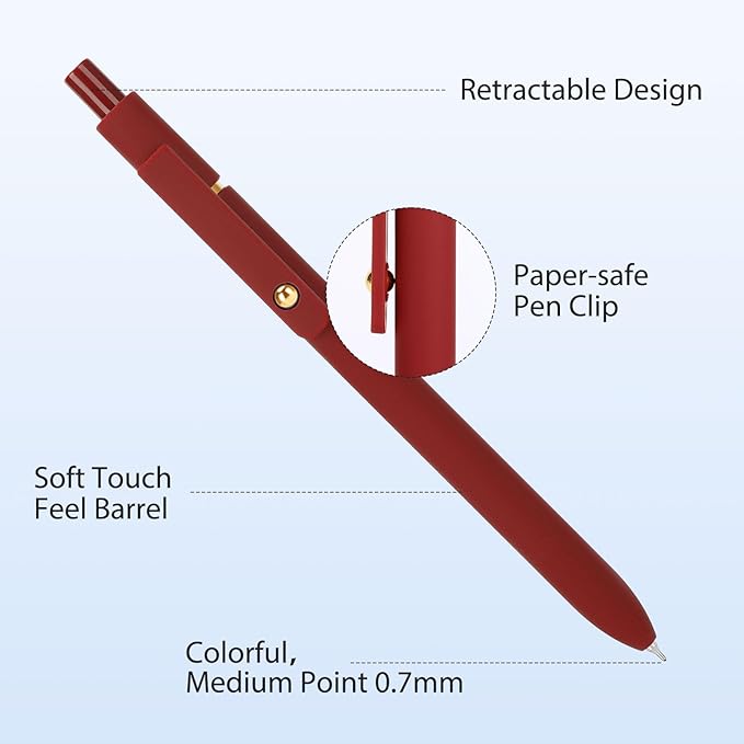 - DURABLE PEN CLIP: The retractable design protects the pen tip from damage and prevents the ink from drying out, while the sturdy clip allows for easy attachment to notebooks, planners, or pockets, ensuring your pens are always within reach.