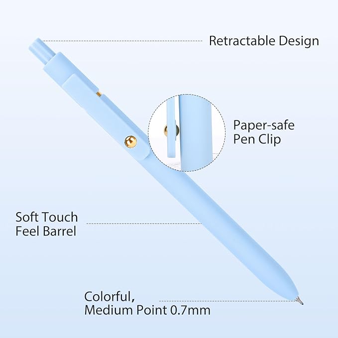 - DURABLE PEN CLIP: The retractable design protects the pen tip from damage and prevents the ink from drying out, while the sturdy clip allows for easy attachment to notebooks, planners, or pockets, ensuring your pens are always within reach.