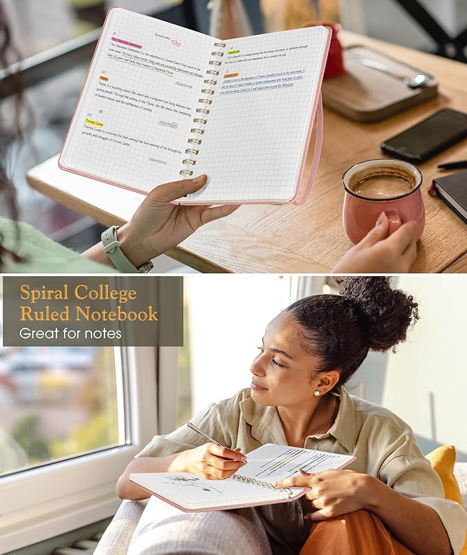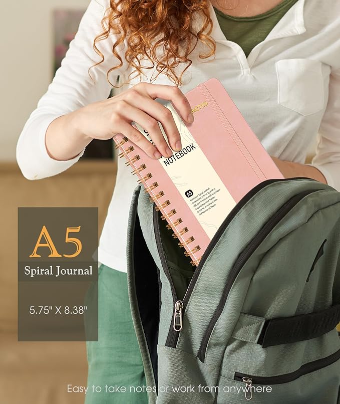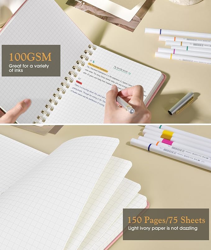 Graph Spiral Journal Notebook, A5 Hardcover Spiral Journals for Women Men, 100 GSM Graph Paper Notebooks, 150 Pages Spiral Bound Grid Notebook for Writing Note Taking Work 5.75" x 8.38", Blush Pink