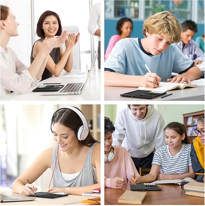 - Ergonomic Design for Easy Use: Display angled to suit your sight and has a larger size and a clearer display making it easy to see whether you are holding it or laying it flat on a table.Large, well-spaced, responsive keys more comfortable to use and the clearance key is conveniently placed above the notepad for quick erasing, while the textured surface not only enhances the look but also prevents slipping. A smart addition to your aesthetic office supplies