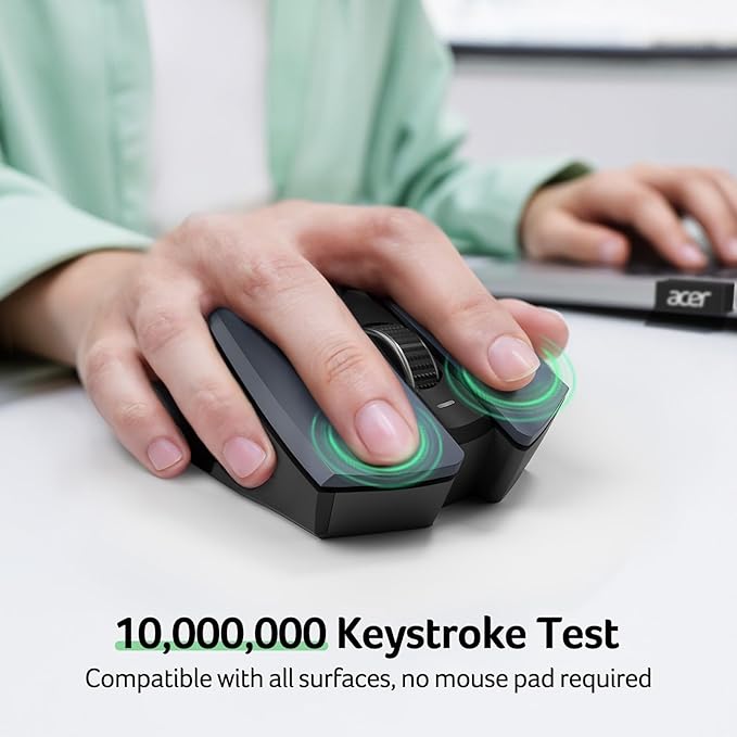 - 【Click to Wake】With smart sleep mode, it saves power by standby after 10 inactive minutes, just 2-3 clicks to wake. This efficient design delivers 3x longer battery life than motion-wake mice. Engineered for durability, its buttons and scroll wheel are tested for 10 million clicks, ensuring long-term reliability and consistent performance.
