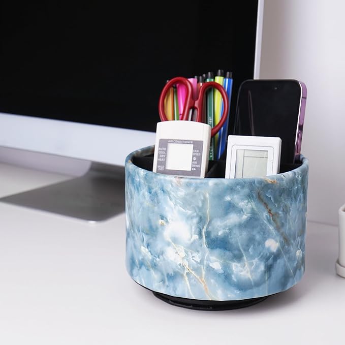 - 360Β° Revolving Design: You can freely rotate the pen holder steadily left and right,unique spinning base design allows easy access to items from any directions.The non-slip pads on the bottom keep it stay in place when rotating.