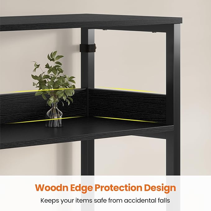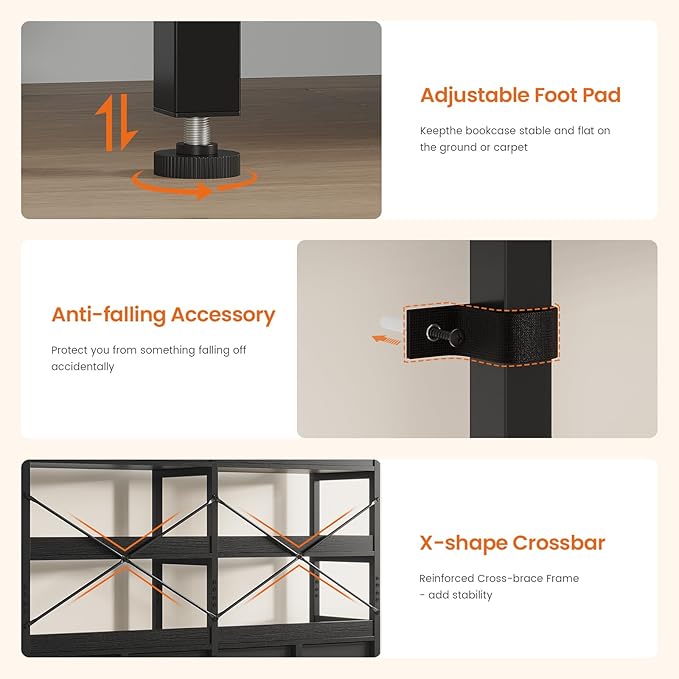 - Enhanced Stability:Equipped with adjustable foot, nd an anti-falling belt to enhance stability, prevent tipping, and ensure the safety of your family. Display shelf with 2 in baffles to prevent items from falling down
