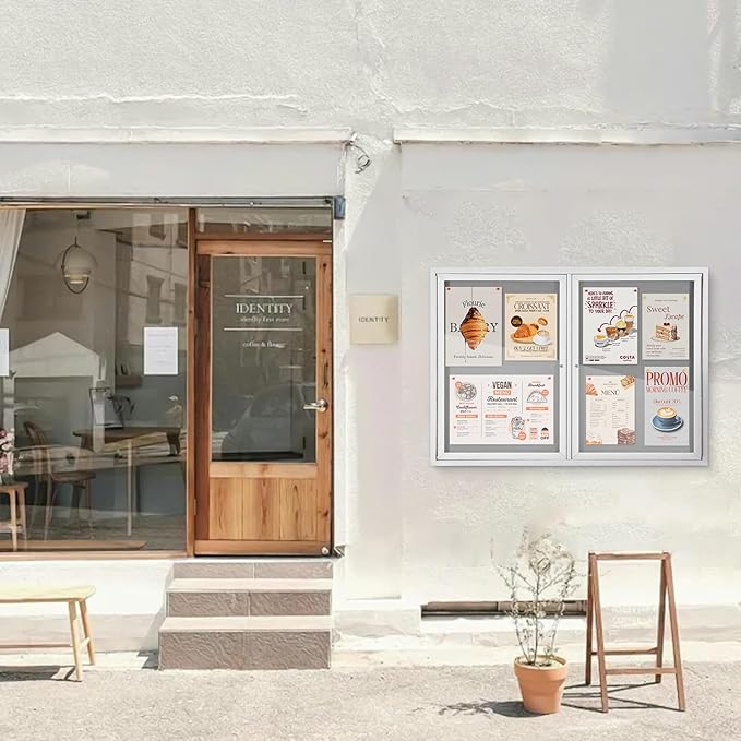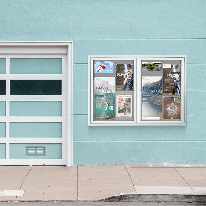 - HIGH-QUALITY MATERIAL:It is made of grey felt pin board, waterproof aluminum construction, shatter-resistant acrylic door and aluminium-plastic panel