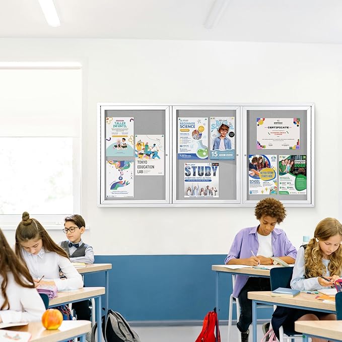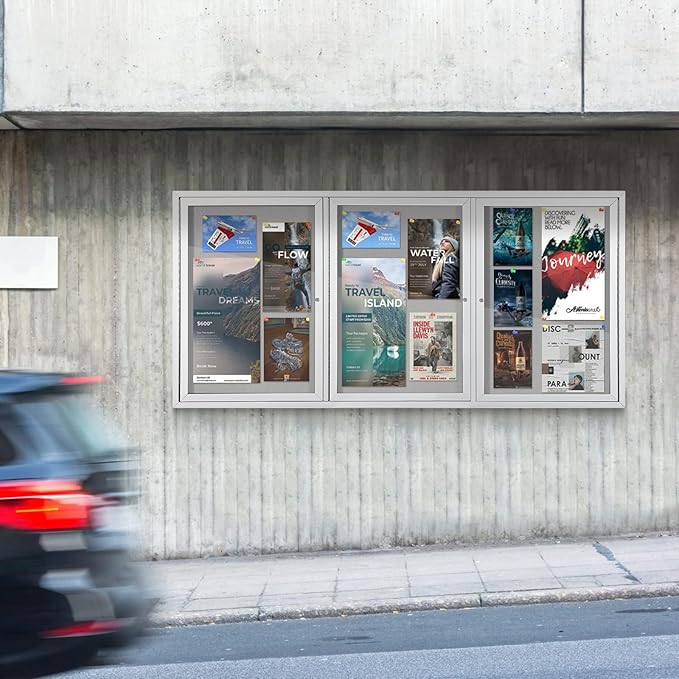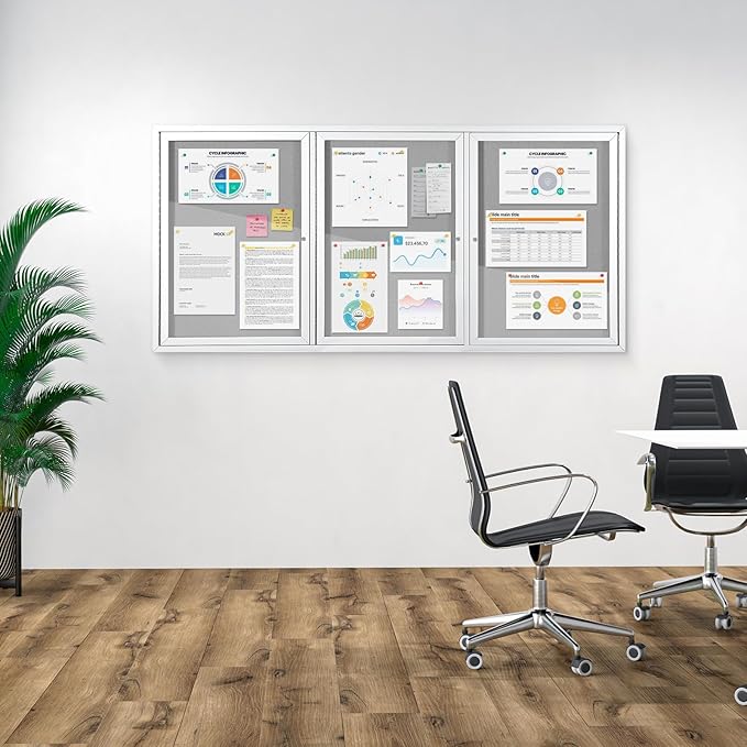 - HIGH-QUALITY MATERIAL:It is made of grey felt pin board, waterproof aluminum construction, shatter-resistant acrylic door and aluminium-plastic panel